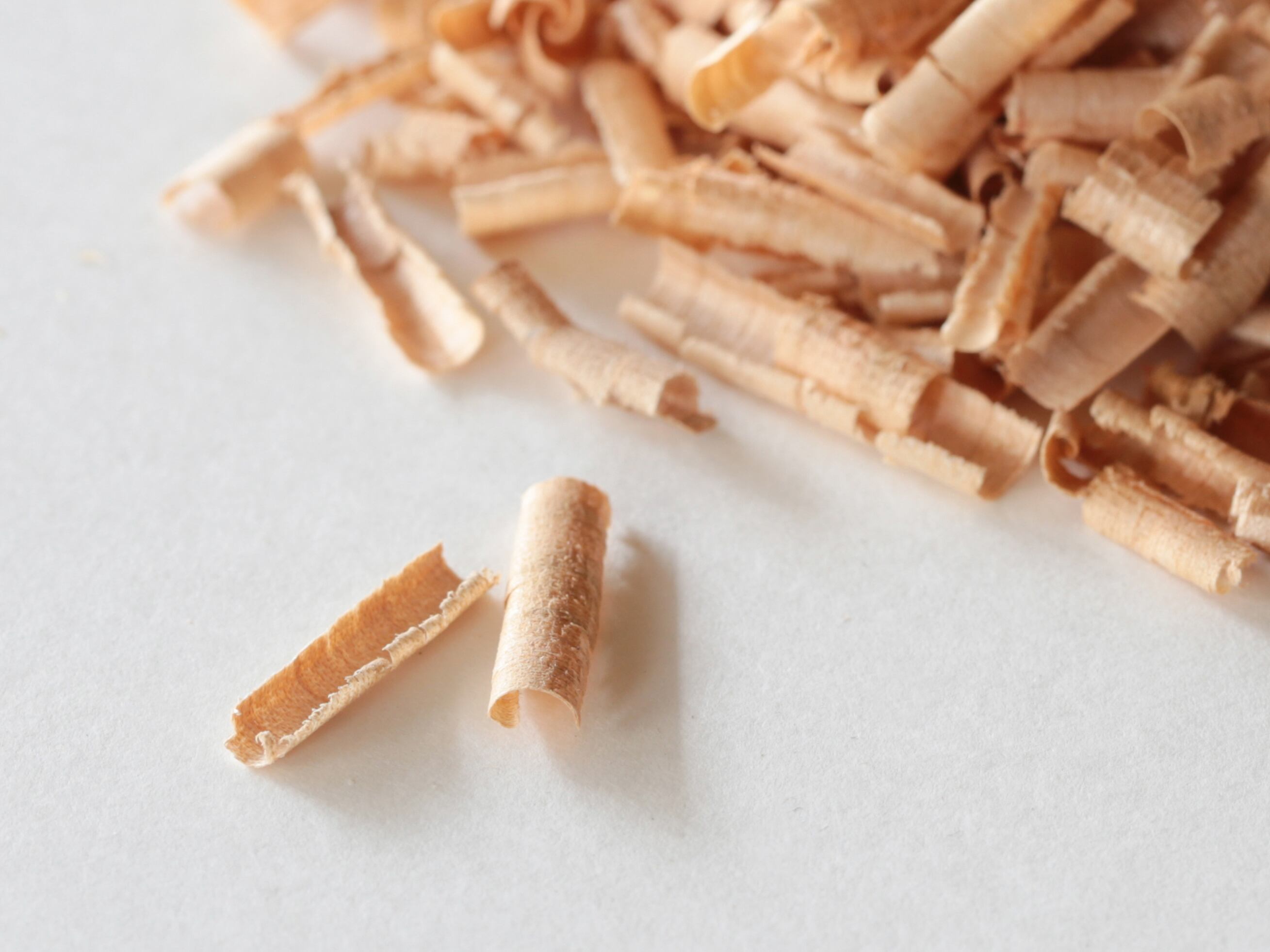 通常の細かな燻製チップと違い、「機械によってカール」したカタチのチップ。